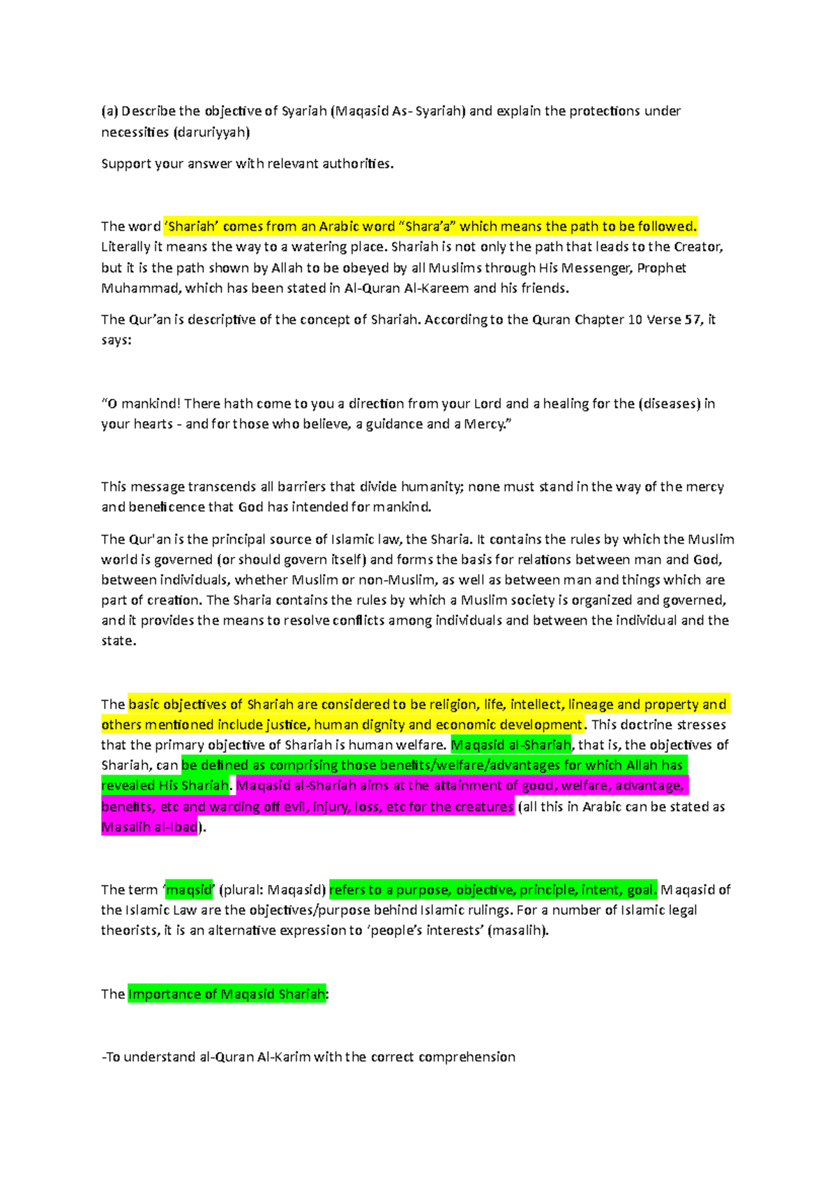 Syariah Law Tutorial 2 Objectives Of Maqasid As Syariah A Describe The Objective Of Syariah Studocu