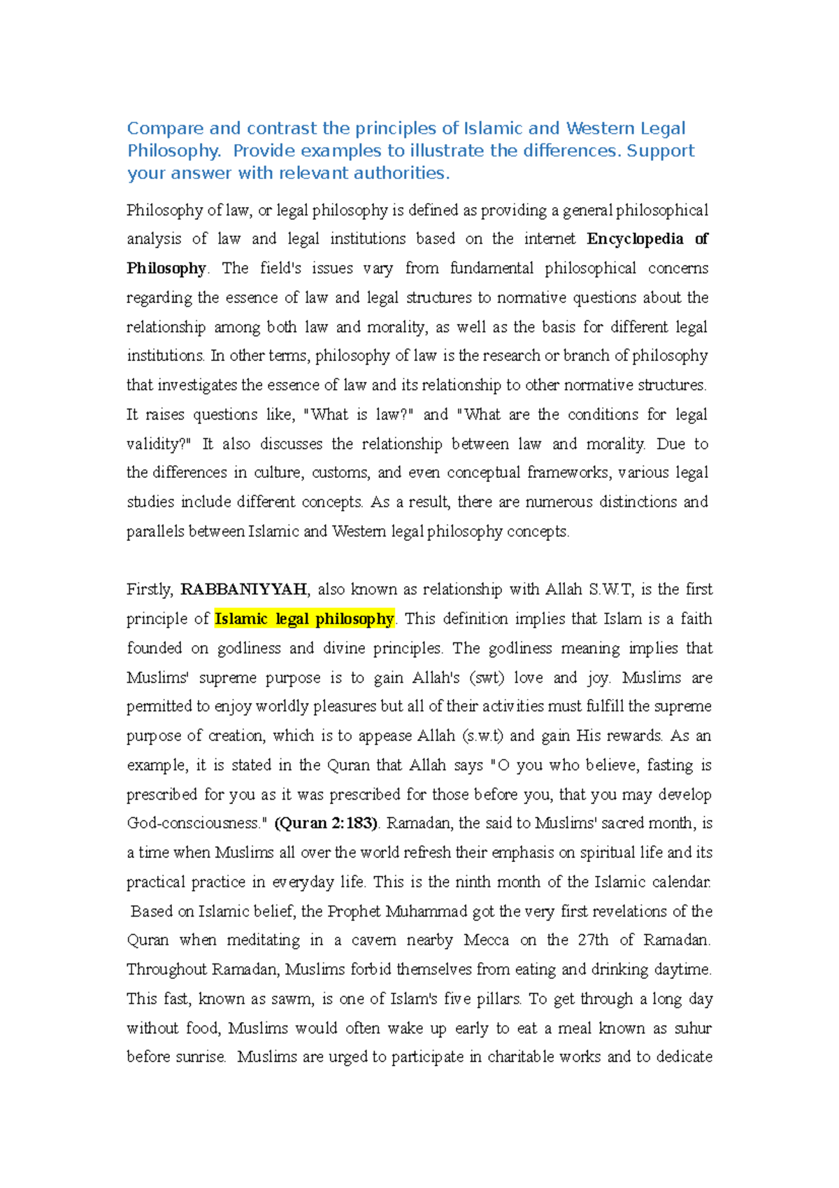 Midterm L S Compare And Contrast The Principles Of Islamic And Western Legal Philosophy Provide Studocu